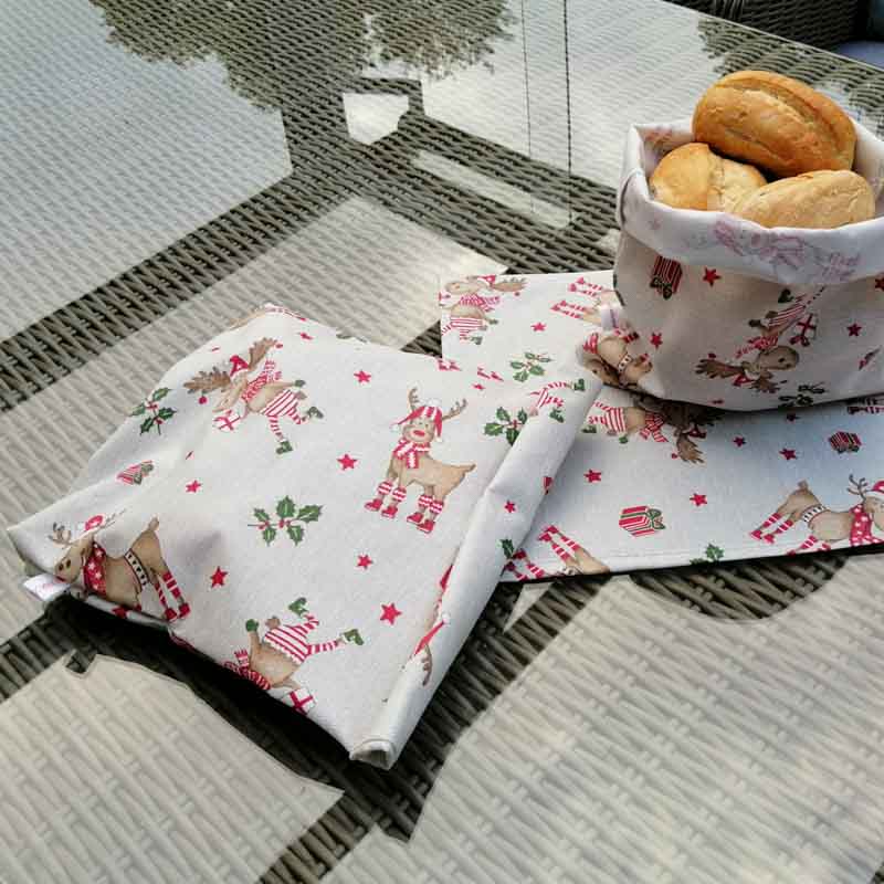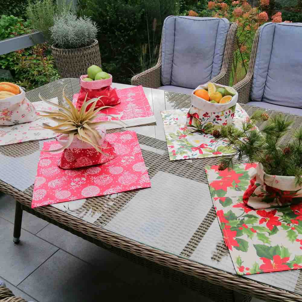 Passend zu diesen Aufbewahrungsbeuteln aus beschichteter Baumwolle finden Sie im Shop auch Tischdecken, Meterware oder Tischläufer. Lassen Sie sich gerne inspirieren! Nutzen Sie die Gelegenheit jetzt Ihren weihnachtlichen Aufbewahrungsbeutel, der beschichtet ist, online zu kaufen!