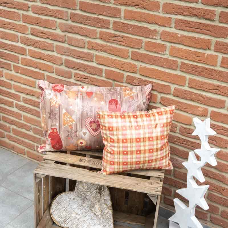 Toll macht sich das Gartenbank Kissen für draußen auf einem Gartenstuhl oder der Gartenbank als Eyecatcher. Und Gäste werden staunen, wenn sie das Garten Kissen Xmas rot kariert mit Herzen als erstes sehen, sobald sie in die Einfahrt fahren oder im Garten ankommen. Da macht auch der graue Winter wieder Spaß!
