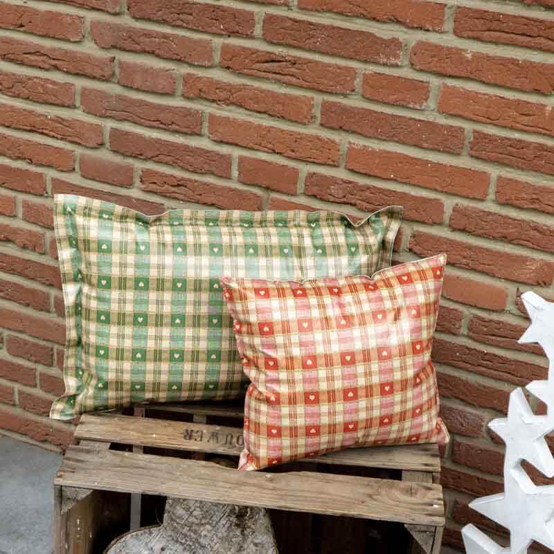 Passend zu diesen Kissen führen wir auch Tischdecken, Mitteldecken und Christbaumdecken und natürlich auch das Pendant dazu: Das Kissen in grün kariert. Schauen Sie sich gerne im Shop um!
