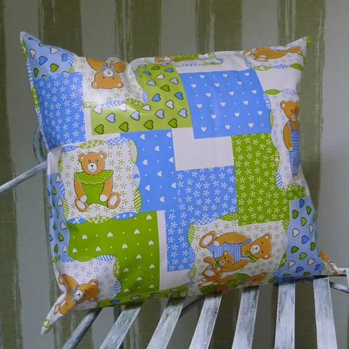 Kinderzimmerkissen Bär grün aus Wachstuch – Outdoorkissen