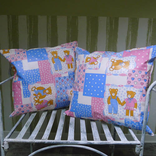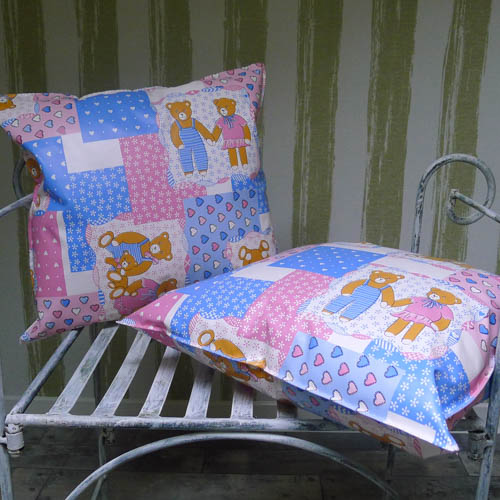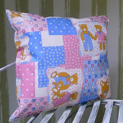 Kinderzimmerkissen Bär rosa aus Wachstuch – Outdoorkissen