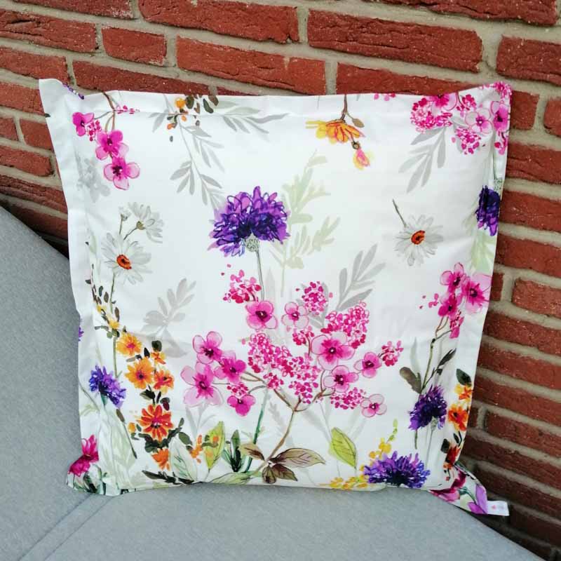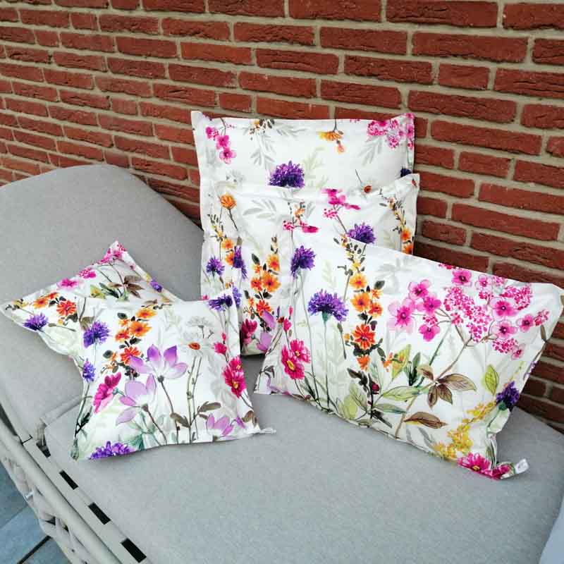 Verwandeln Sie Ihren Relaxbereich oder die Loungeecke im Garten in eine Wohlfühloase und dekorieren sie diese mit den wunderschönen Kissen mit dem Motiv Blumenwiese (Kissenhülllen). Das Motiv Blumenwiese ist top aktuell, bringt Farbe in Ihre Relaxecke und macht einfach gute Laune!