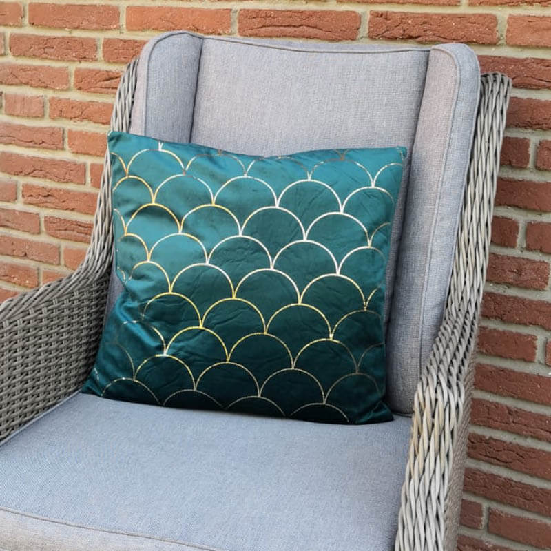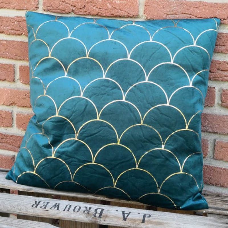 Kissenhülle aus Samt dunkelgrün mit Bögen