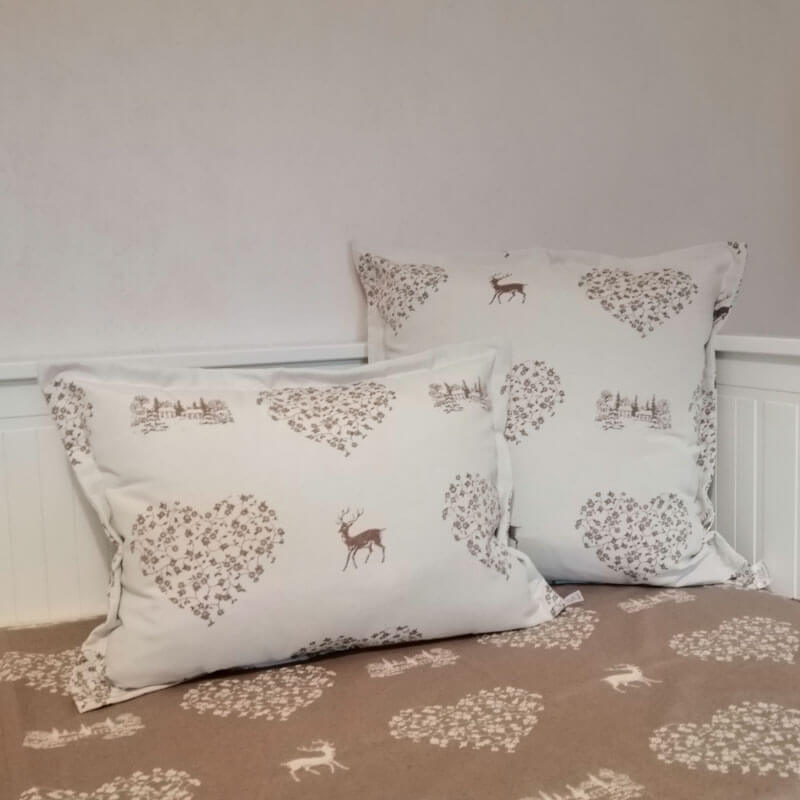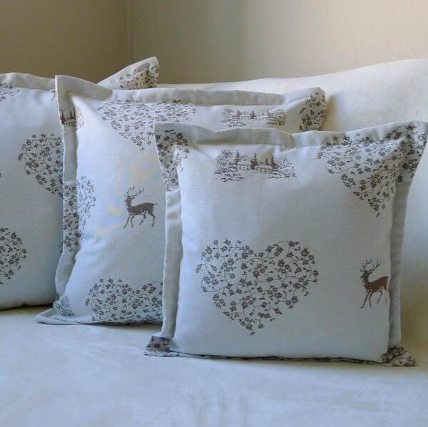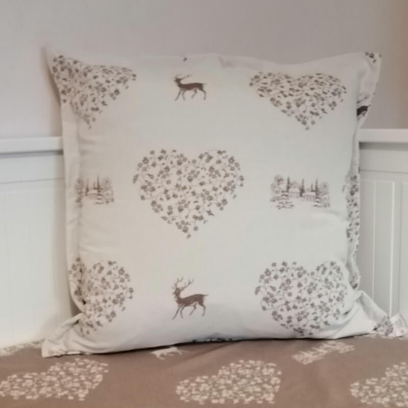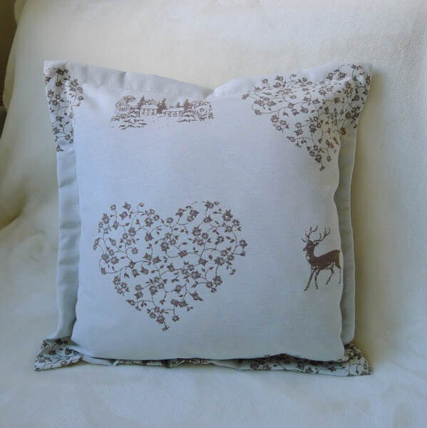 Kissenhülle Hirsch mit Herzen creme mit beigem Muster