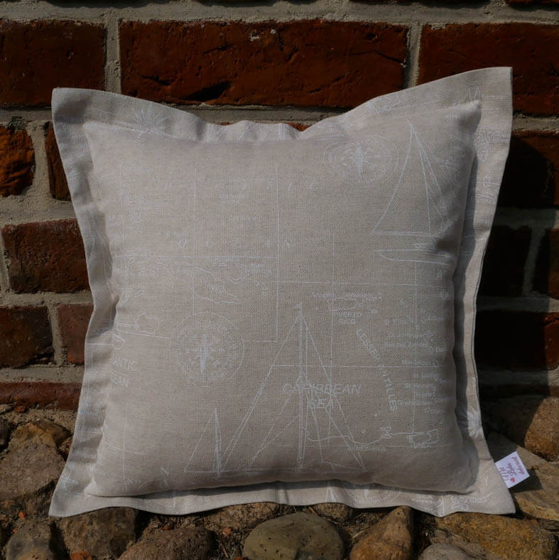 Kissenhülle / Maritimes Kissen beige mit weißen Motiven