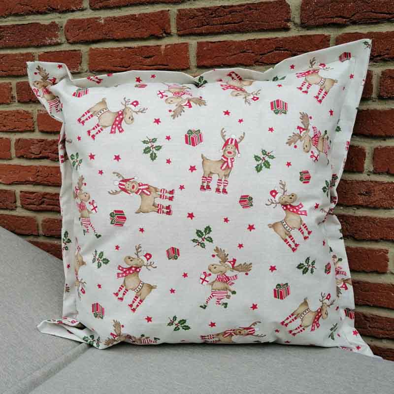 Diese Kissenhülle Rudolf mit Socken ist aus beschichteter Baumwolle genäht und somit im Innenbereich, aber auch im Wintergarten oder auf der Terrasse nutzbar.