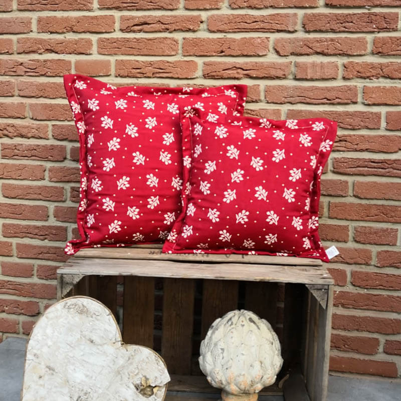 Kissenhülle Zweige Creme / roter Hintergrund
