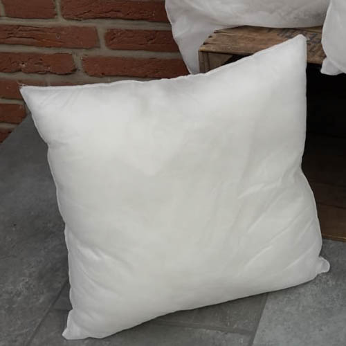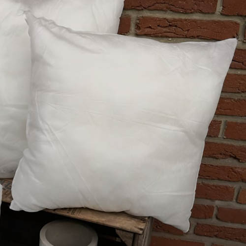 Das weiße Vlieskissen mit einer Synthetikfüllung ist waschbar und als Sofakissen – Kissenfüllung verwendbar.