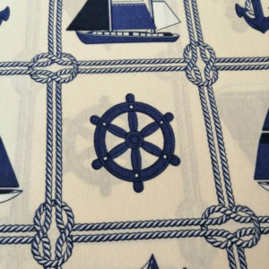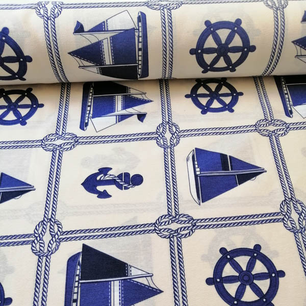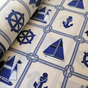 Diese Meterware Schiffe & Anker ist ein toller Blickfang in Ihrem Wohnzimmer oder im Garten – Ihre Gäste werden begeistert sein. Das Motiv passt toll in die Frühlings- oder Sommersaison, kann aber mit den schönen Farben auch das ganze Jahr dekoriert werden.