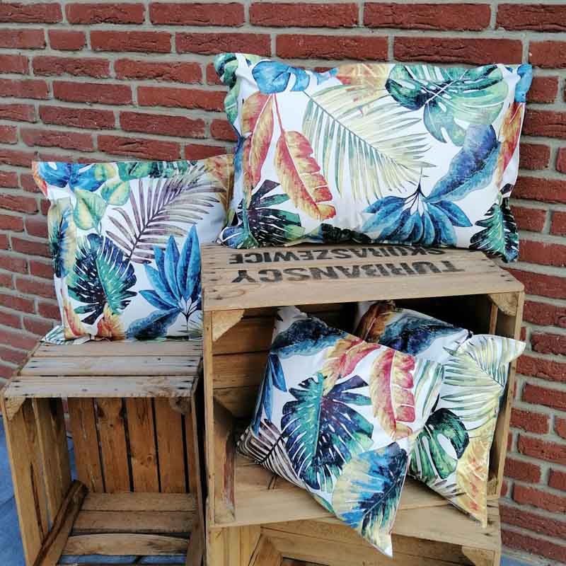 Outdoor Kissen Tropenblätter aus Wachstuch – Die trendige Gartendeko!