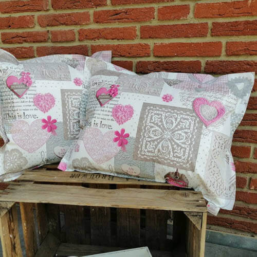 Wachstuch Kissen Herzen rosa – für Drinnen & Draußen!