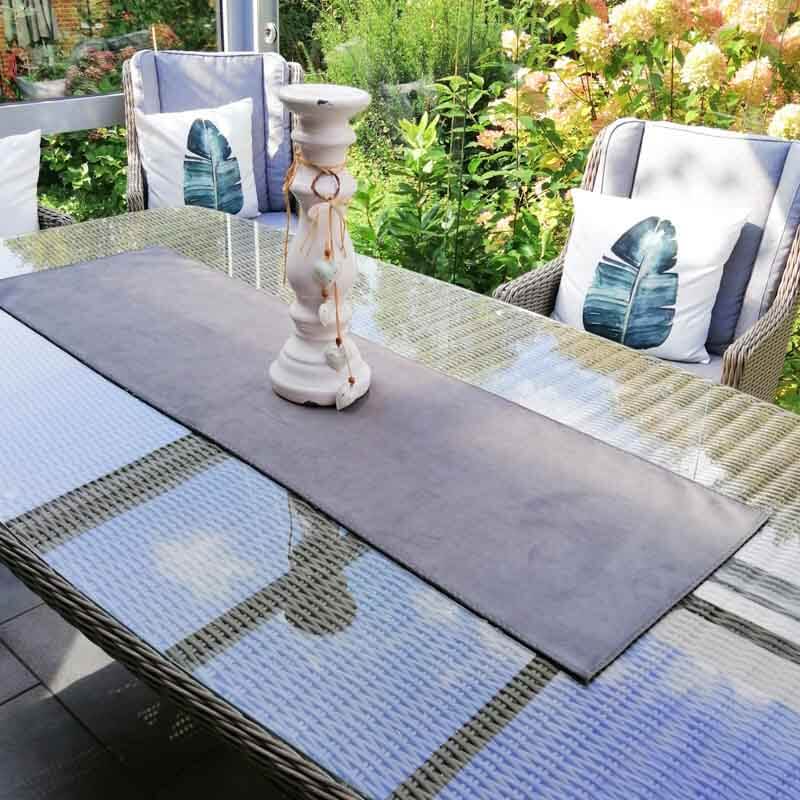 Große Kerzenleuchter, edles Besteck und schöne Gläser zum Essen – was passt da besser als ein stilvoller Samt Tischläufer in Hellgrau, der Trendfarbe schlechthin zur Zeit? Die Tisch Deko sollte ein Gesamtkonzept ergeben und zu Raumdeko, Sofa oder Stühlen passen und dieser Tischläufer rundet das edle Ambiente stilvoll ab.