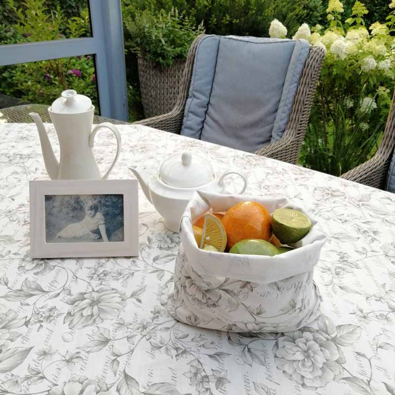 Die Tischdecke anthrazit mit schönen Blumenranken ist aus beschichteter Baumwolle von Hand gefertigt und durch die Beschichtung wasserabweisend. Spritzer eines kurzes Regenschauers oder durch ein umgefallenes Glas können Sie einfach von der Tischdecke abwischen. Ihr Tisch wird geschont und es ist auch nicht nötig, die Tischdecke nach jeder Verwendung in der Waschmaschine zu waschen. Praktikabel und ein schönes Design – entdecken Sie die Möglichkeiten mit der Tischdecke anthrazit mit schönen Blumenranken!