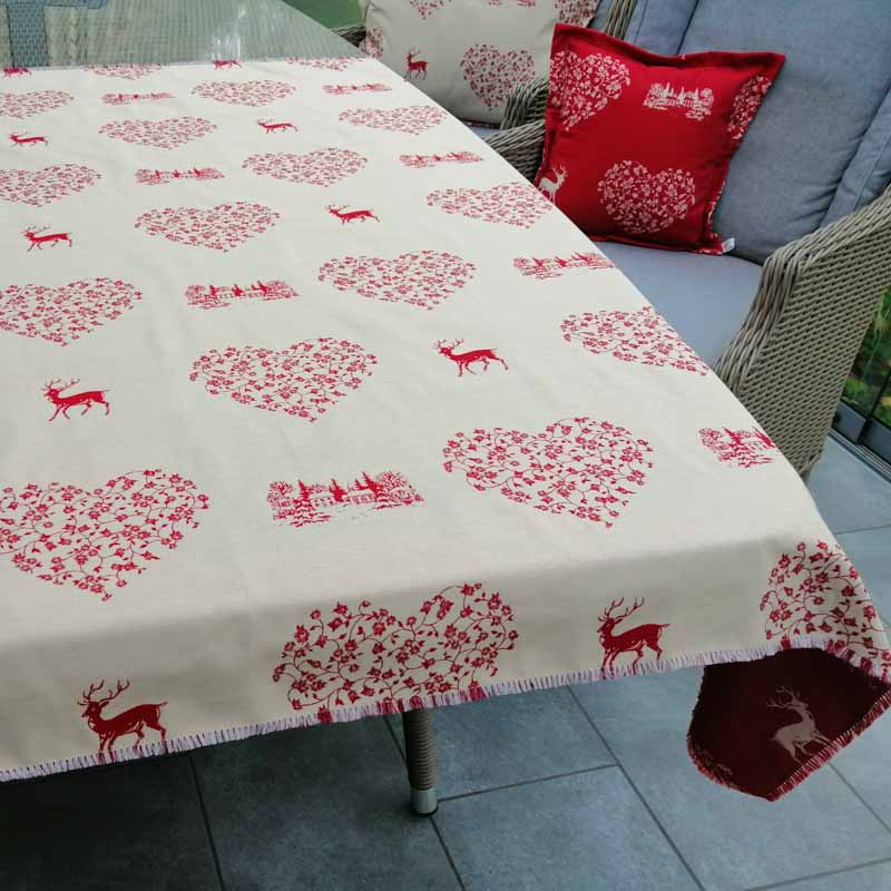 Tischdecke roter Hirsch mit Herzen (auf creme)