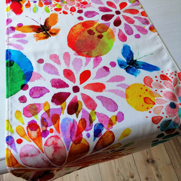 Tischläufer aus Baumwolle – Blumen mit Schmetterling