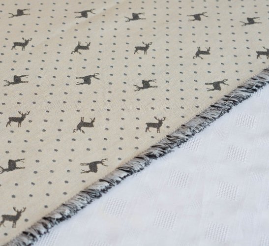 Tischläufer Elchmotiv beige & grau aus Jacquard