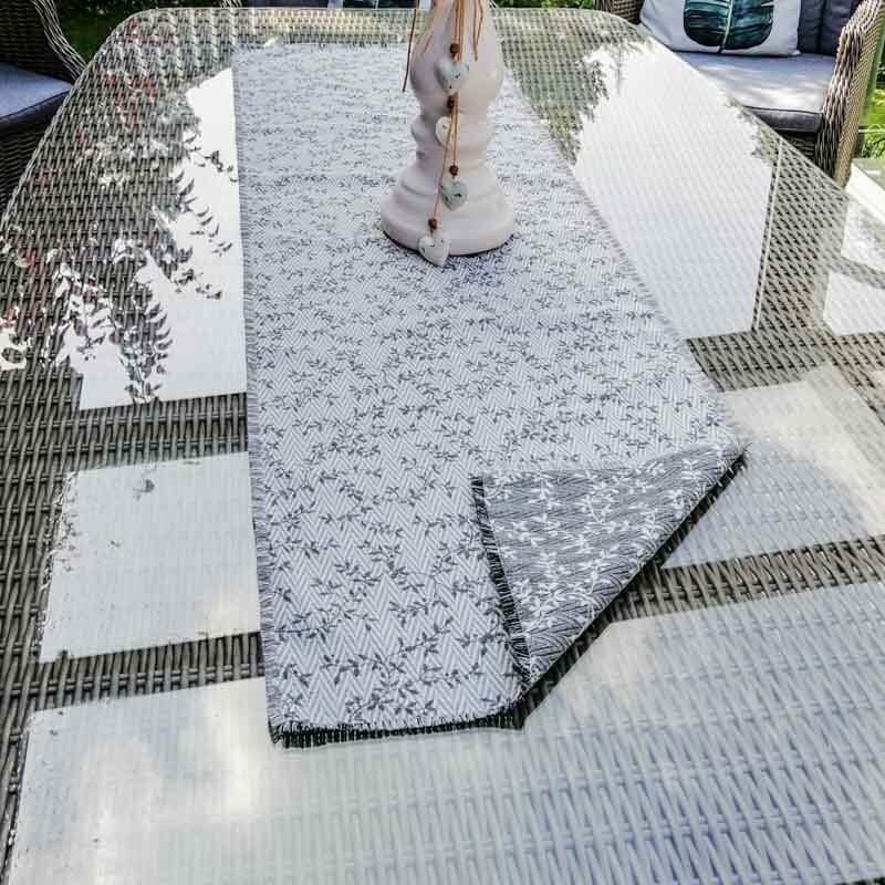 Reinigung: Den Tischläufer können Sie bei 30 Grad in der Waschmaschine waschen und auch auf mittlerer Stufe bügeln.
