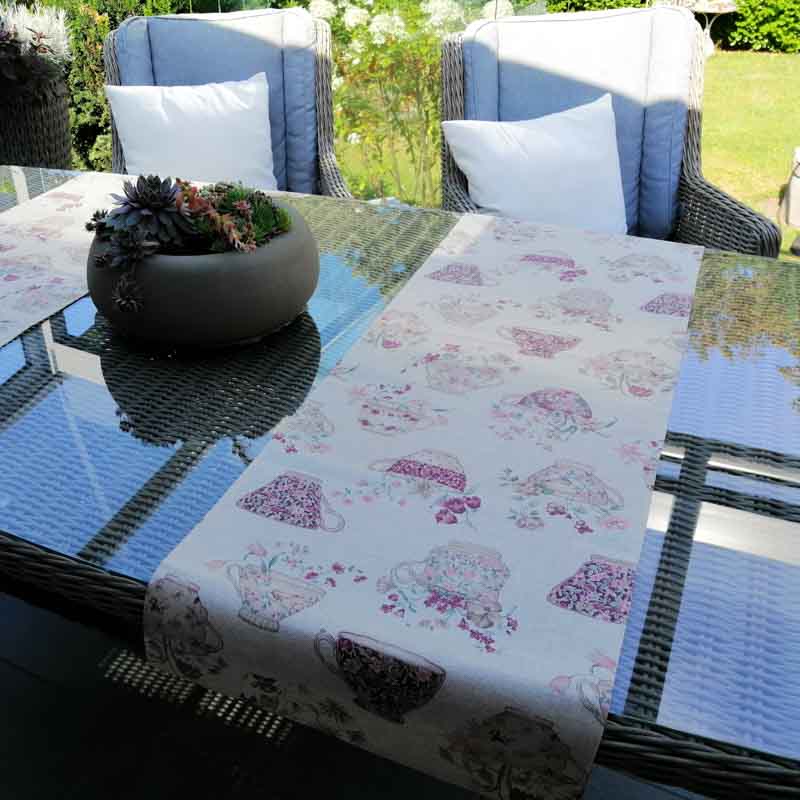 Tischläufer Tasse mit Blumen – Beschichtete Baumwolle