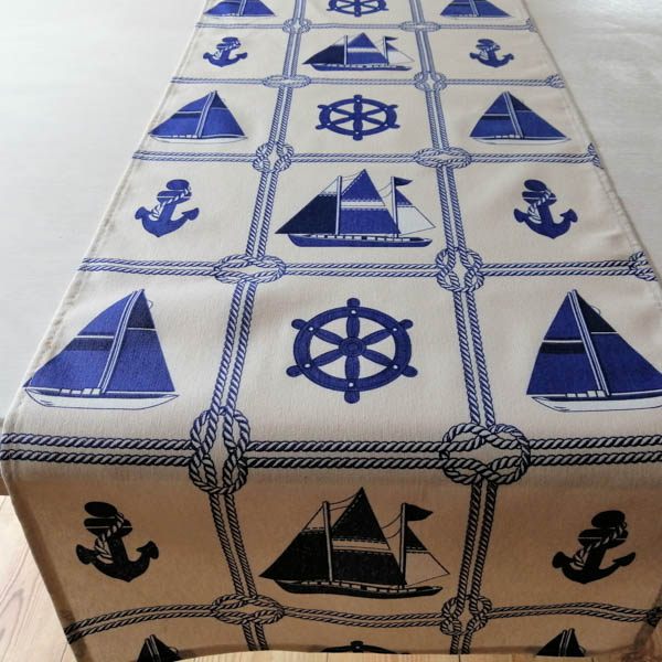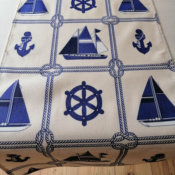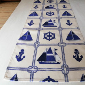 Tischläufer weiß – Maritim mit Schiffen & Ankern