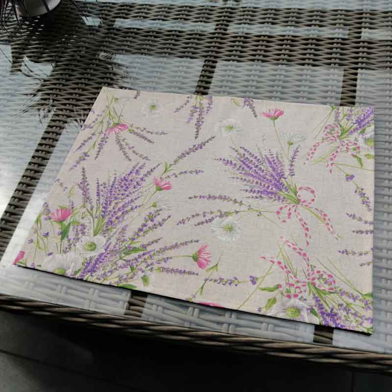 Diese Tischsets Lavendel beschichtet haben ein modernes Design und passen sich Ihrem eigenen Stil an – egal ob Sie den klassischen Landhausstil mögen, im Shabby Chic oder doch eher modern eingerichtet sind. Und wenn Sie eine Familie haben können Sie das Tischset drinnen am Esstisch nutzen, da kann eine Kleckerei der Kleinen dem Tisch nichts mehr anhaben.