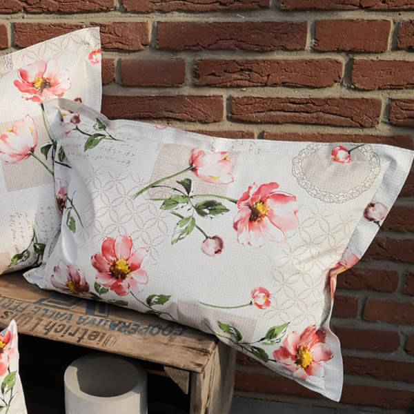 Das romantische Motiv in den warmen Farben kann das ganze Jahr dekoriert und mit anderen Mustern kombiniert werden, passt aber natürlich toll in die wärmere Jahreszeit.