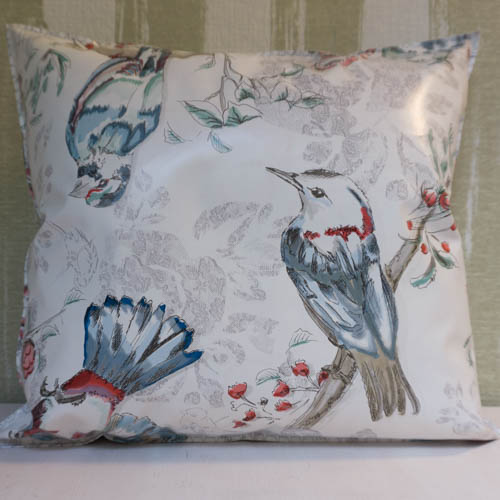 Wachstuch Kissen Vögel im Frühling – aus Wachstuch – für eine tolle Gartendeko!