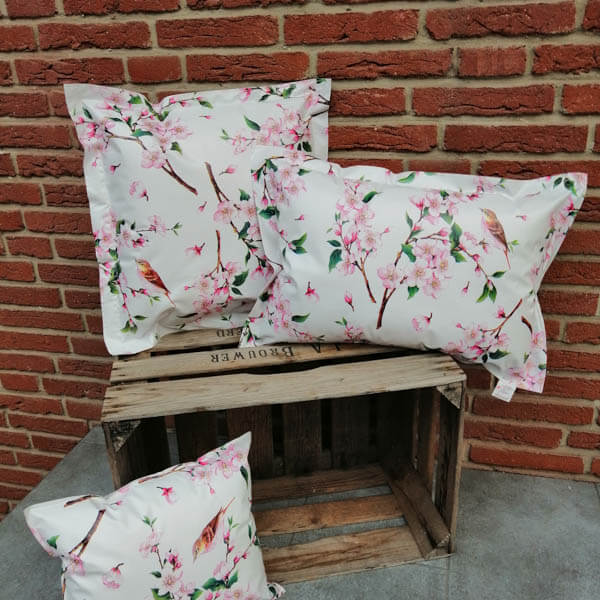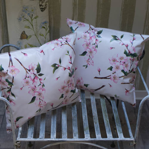 Wachstuch / Outdoor Kissen Kirschblüte – für eine tolle Gartendeko!
