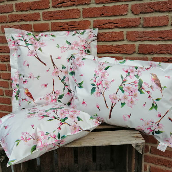 Jetzt holen Sie sich den Frühling in den Garten & Ihr Zuhause – tolle Wachstuch / Outdoor Kissen Kirschblüte, und was macht da mehr Spaß, als die richtigen Accessoires im Garten, den Balkon, im Wintergarten oder auf der Terrasse dekorieren zu können? Da kommen diese Outdoor Kissen Kirschblüte aus Wachstuch genau richtig.