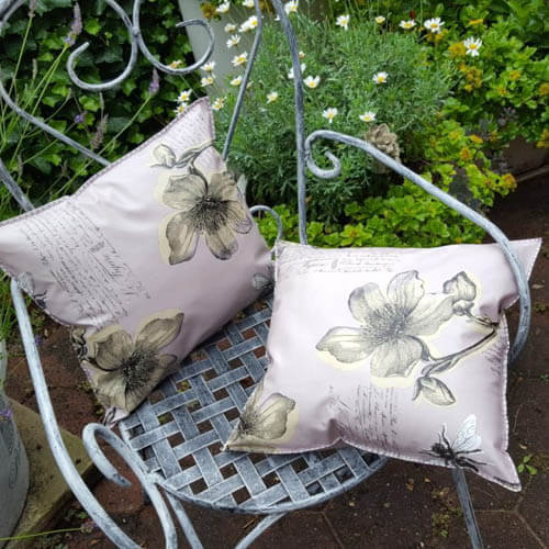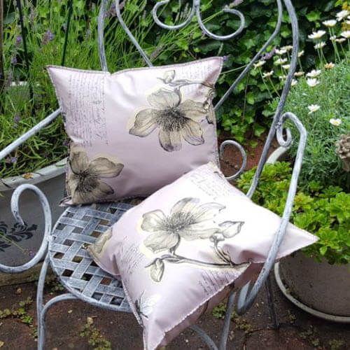 Die Kissen sind mit einer Ziernaht komplett umnäht und daher wasserabweisend, abwaschbar und zu jeder Jahreszeit verwendbar. Die Füllung besteht aus einem eingenähten Kissen, das nicht separat entnehmbar ist. Das bedeutet, dass die Kissen auch bei einem Sommerregen oder sogar im Winter bei Schnee draußen stehen können, sie sind robust gefertigt und trotzen schlechtem Wetter.