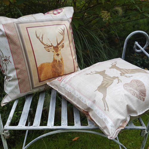 Weihnachtskissen mit Hirschmuster aus Wachstuch (35x38cm)