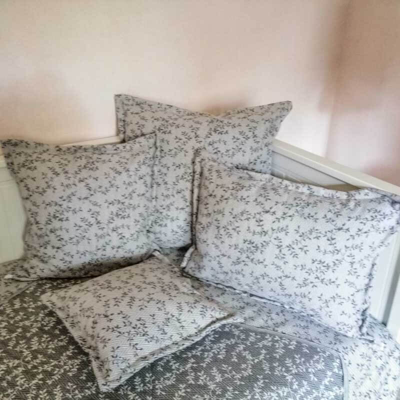 Nutzen Sie diesen Kissenbezug Ranken in Ihrem Wohnzimmer auf der Couch oder auf dem Sessel und kuscheln Sie sich hinein. Toll können Sie die Kissenhülle aber auch im Esszimmer, Eingangsbereich oder im Schlafzimmer verwenden. Mit diesem Kissen bringen Sie eine tolle Atmosphäre in Ihren Wohnbereich – die Farben in Hell- und Dunkelgrau können Sie mit Ihrem individuellen Einrichtungsstil kombinieren. Der Kissenbezug mit Ranken passt toll zu einem Landhausstil, Shabby Chic oder aber als Eyecatcher in einem modernem Haus. Probieren Sie es aus und kombinieren Sie dieses Kissen in hellgrau mit der grauen Variante.