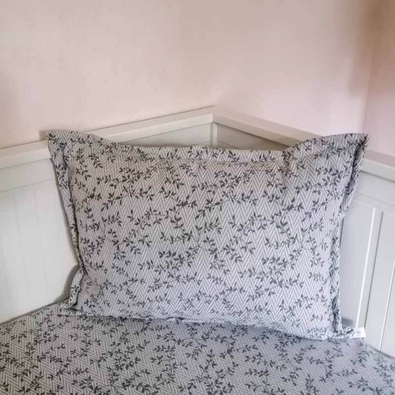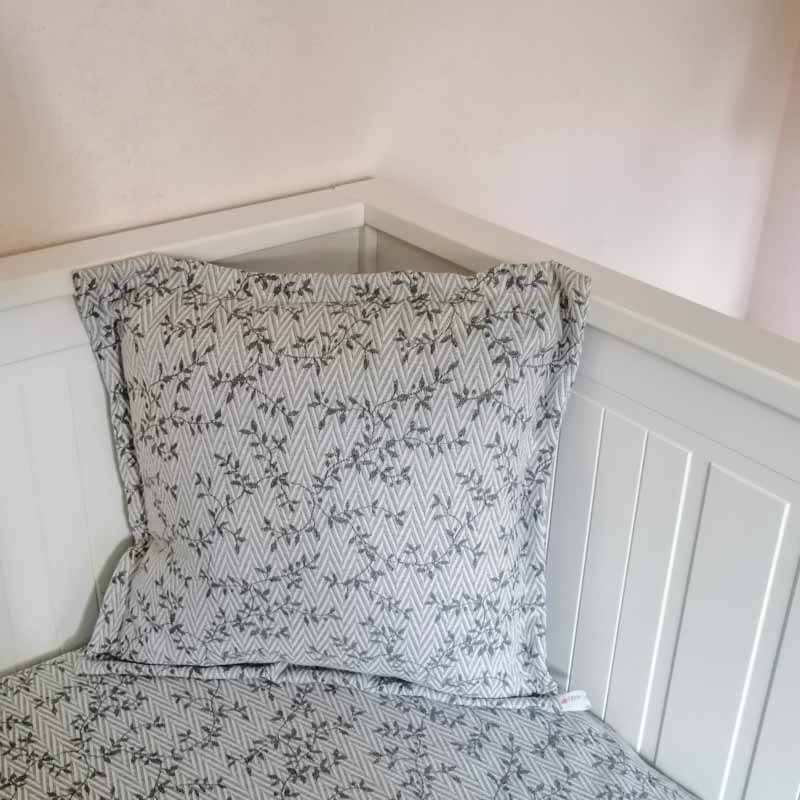 Reinigung: Diesen Kissenbezug können Sie bei 30 Grad in der Waschmaschine waschen und auch auf mittlerer Stufe bügeln.