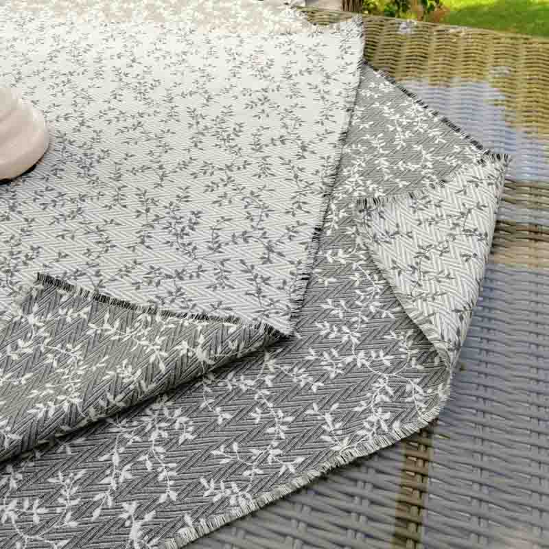 Diese Mitteldecke Ranken aus Jacquard finden Sie bei uns im Shop in der Größe 100x100cm und in vielen anderen Größen, so dass Sie sich auch ideal kombinieren können. Die Tischdecke ist mit einem kleinen Rand aus Fransen genäht. Diese Mitteldecke für den Tisch ist eine Wendedecke, sie können Sie also von beiden Seiten legen. Einmal als Tischauflage mit der hellgrauen Seite und einmal mit der dunkelgrauen Seite – Kombinieren Sie sie wie es Ihnen am besten passt.