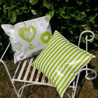 Outdoor Kissen / Wachstuchkissen grün gestreift – für eine tolle Gartendeko!