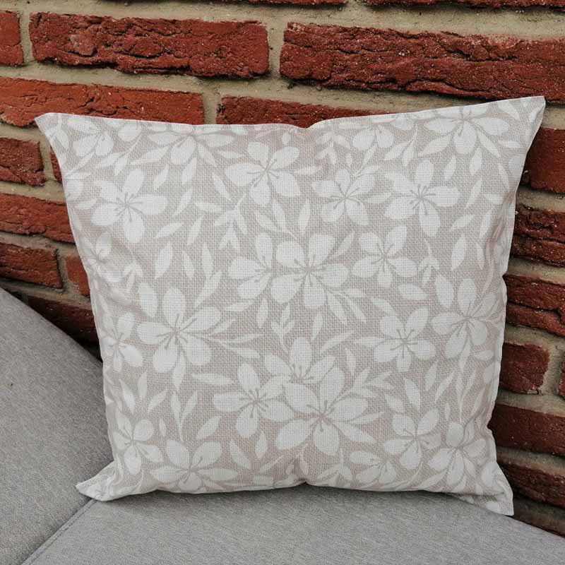 Dieses Outdoorkissen braun mit weißen Blumenranken aus Wachstuch ist ein Kissen für den Balkon oder für den Garten. Eine tolle Optik, drei verschiedene Größen und genäht aus hochwertigem Wachstuchstoff – dieses Kissen ist ein Allrounder im Garten, auf der Terrasse oder auf dem Balkon und kann individuell genutzt werden. Dekorieren Sie es z.B. auf der Gartenbank oder als Dekoelement auf dem Balkon!