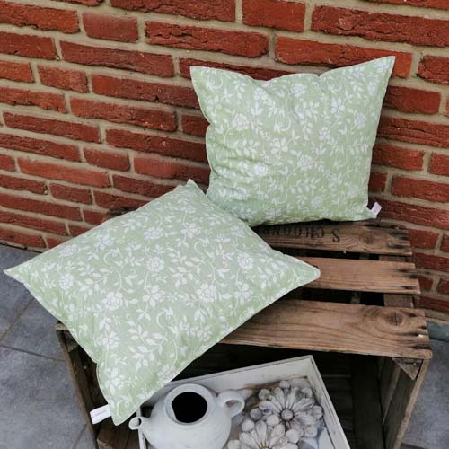 Dieses Outdoorkissen grün mit weißen Blumenranken aus Wachstuch ist ein Kissen für den Garten. Eine tolle, verspielte Optik, drei verschiedene Größen und genäht aus hochwertigem Stoff – dieses Kissen ist ein Allrounder im Garten, auf der Terrasse oder auf dem Balkon und kann individuell genutzt werden. Dekorieren Sie es z.B. auf der Gartenbank oder als Dekoelement auf dem Balkon!