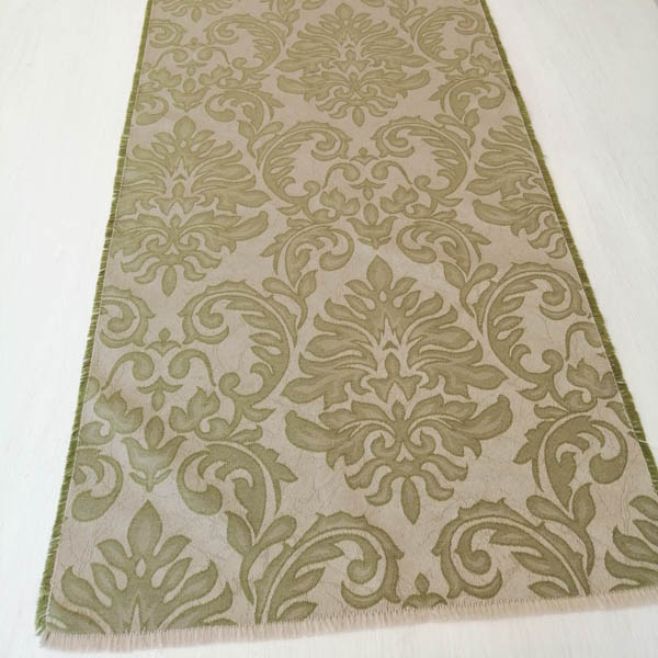 Tischläufer Esstisch – Beige mit grünen Ornamenten
