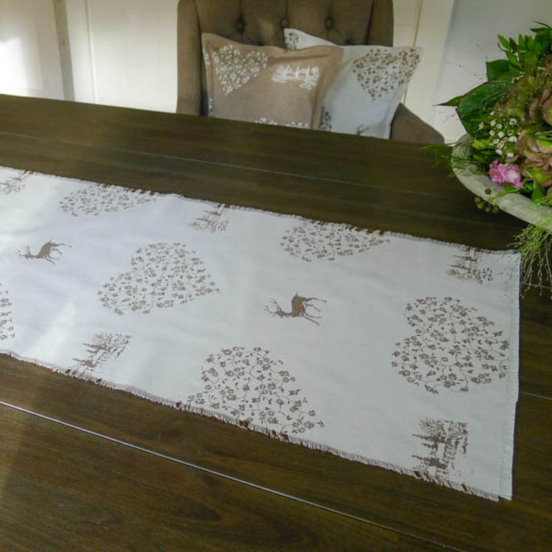 Der schöne Tischläufer Hirsch mit Herzen in creme ist zu jeder Jahreszeit, zu allen Anlässen und Feierlichkeiten verwendbar. Er ist ideal für eine tolle Wohnraum-, Garten- & Terrassendekoration.