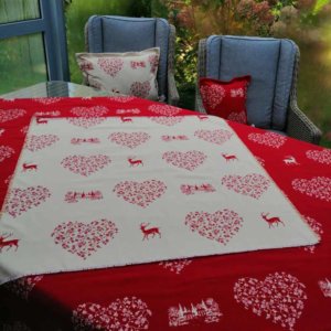 Die Tischdecke Hirsch mit Herzen in rot ist eine schöne Idee zum Verschenken an Freunde oder die Familie. Zum Beispiel zum Geburtstag, Muttertag, Nikolaus, Weihnachten oder einfach zwischendurch.